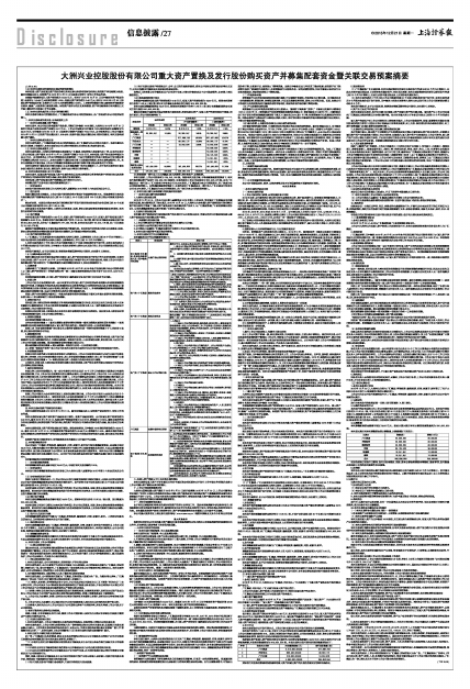 大洲兴业控股股份有限公司重大资产置换及发行股份购买资产并募集配套资金暨关联交易预案摘要