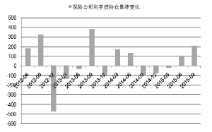 风险偏好降低,保险对利率债显现加仓迹象。在经过连续3个季度的持仓净减少之后,从2015年第二季度起,保险公司对利率债的增持再现连续两个季度的净增加。我们认为,经济下行中信用风险加大,优质债权项目减少,保险公司自身的风险偏好也在降低之中,尽管从保费的角度来看,配置利率债仍然是亏本的生意,但无论是从期限匹配,还是风险控制的角度看,保险公司也将不得不被动加大对利率债的配置。但出于高负债的压力,对保险公司的配置力度不宜有过高的期望。并且,从券种来看,地方债也将是其首选。