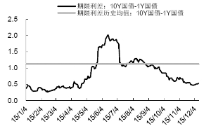 第二,基于期限利差低位稳定,我们预测 10Y-1Y国债期限利差中枢在(20bp,50bp)。2016 年信用利差相较2015 年缩窄,主要有两点逻辑:其一,供给侧改革、去杠杆追求资金价格稳定及货币适度宽松,因此市场预期2016 年资金利率较为稳定且明确,所以流动性溢价不高;其二,实体经济资本边际报酬下降,长端利率将下行。