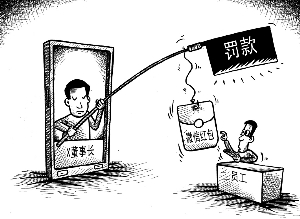 某公司董事长元旦后第一天上班时往所在的微信群发了个红包。有3三位中层人员立马抢了红包,其余员工在中午12点左右才下手。下午,最先抢红包的三人收到了罚款500元通知。董事长说:公司属于特殊行业,关系千家万户安全,容不得一点马虎。上班时间抢红包,还怎么带员工?漫画 刘道伟