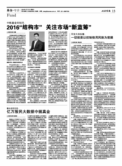孙健还就供给侧改革、地方债置换、“资产荒”等热点话题接受了《上海证券报》的专访。