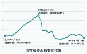 本轮融资余额规模的下滑始于2015年12月下旬。彼时,融资余额一度冲到1.2万亿元上方。然而,随着行情在年底岁末出现反复高位震荡,融资资金开始离场,并自2015年12月30日全面驶入下行通道。本月初,随着大盘快速跳水,融资余额在十四个交易日中减少两千亿元,并于上周五重回万亿元以下。
