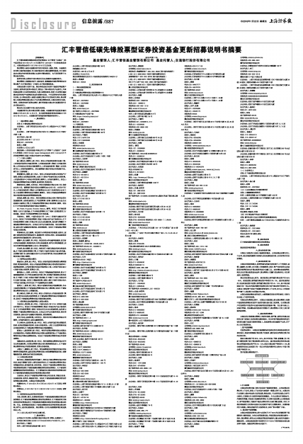 汇丰晋信低碳先锋股票型证券投资基金更新招募说明书摘要