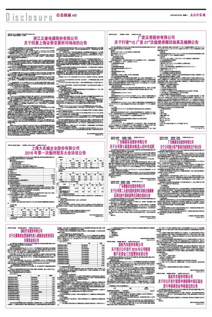 股票代码:601877 股票简称:正泰电器 编号:临2016-005