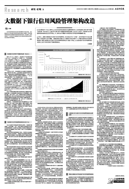 ■事实上,随着大数据技术在银行信用风险管理上的有效应用与广泛推广,信用风险并非无法总量控制、有效监测与及时预警。关键是要逐步建立以大数据分析逐步替代个人判断的新型信用风险管理架构,围绕大数据分析对银行信用风险管理架构进行重组与再造,以此提高银行信用风险管理的有效性,进而平抑信贷资产质量周期波动。