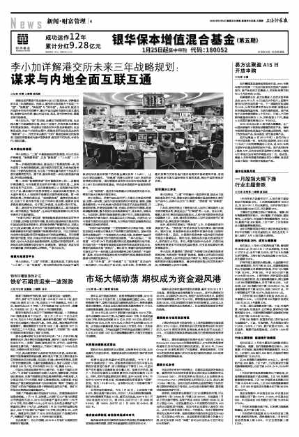 香港交易所集团行政总裁李小加3日发表网志,详解港交所未来三年战略规划。他表示,港交所未来将致力于实现三个“通”:“股票通”、“商品通”与“货币通”。具体而言,就是与内地的合作伙伴共同携手,建立中国与国际市场的互联互通机制,连接中国与世界,输出中国企业、商品、货币的定价权,重塑全球市场格局。