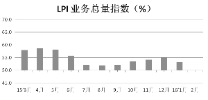 2016年2月业务总量指数为50%,比上月下降3.3个百分点。从行业看,水上运输业、航空运输业仓储业和邮政业高于50%;铁路运输业、道路运输业、管道运输业和装卸搬运和其他运输服务业低于50%。从区域看,东部指数为56.5%;中部和西部指数分别为44.6%和44%。从企业类型看,综合型物流业和仓储型物流业指数分别为51.8%和53.8%;运输型物流业指数为42.5%。从企业规模看,中型物流企业和微型物流企业位于50%以上;大型物流企业和小型物流企业位于50%以下。