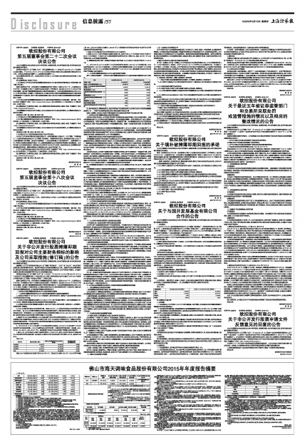 佛山市海天调味食品股份有限公司2015年年度报告摘要