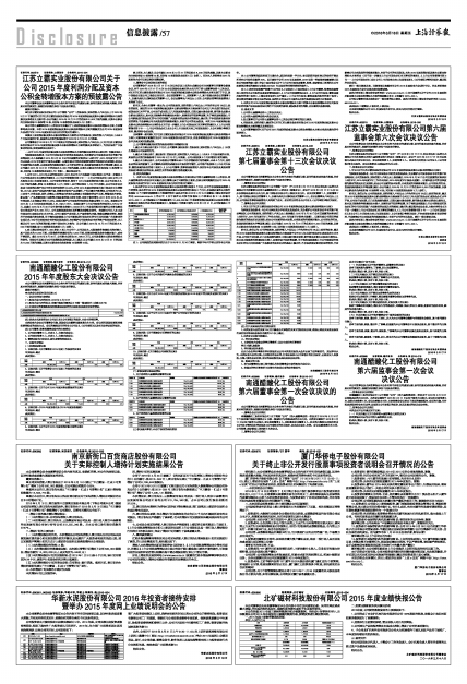 证券代码:600801、900933 证券简称:华新水泥、华新B股编号:临2016-004