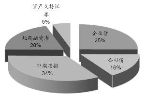 截至2015年底,在目前的信用债市场上,中期票据占比达34%,短期融资券占比达20%,企业债占比为25%,公司债占比为16%。评级分布方面,债项评级AAA的券占有做大的份额。具体来看:债项评级为AAA的信用债占比达35%,评级为AA+的信用债占比为11.81%,评级为AA的信用债占比为10.17%。