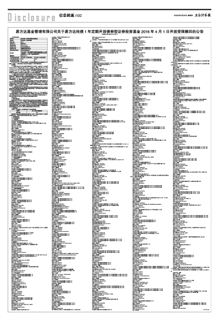 注:2016年4月1日为易方达纯债1年定期开放债券型证券投资基金(以下简称“本基金”)受限开放期,仅在当天开放赎回,不开放申购和转换。