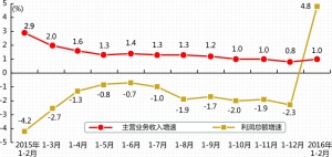 工业企业产品销售增长加快。1-2月份,规模以上工业企业主营业务收入同比增长1%,增速比2015年加快0.2个百分点,比2015年12月份提高1.6个百分点。
