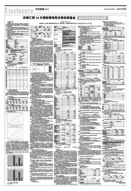 2015年度,由农银汇理基金管理有限公司编制并经托管人复核审查的有关农银汇理14天理财债券型证券投资基金的年度报告中财务指标、净值表现、收益分配情况、财务会计报告相关内容、投资组合报告等内容真实、准确、完整。