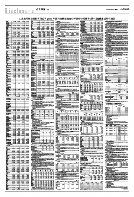 山东太阳纸业股份有限公司2016年面向合格投资者公开发行公司债券(第一期)募集说明书摘要