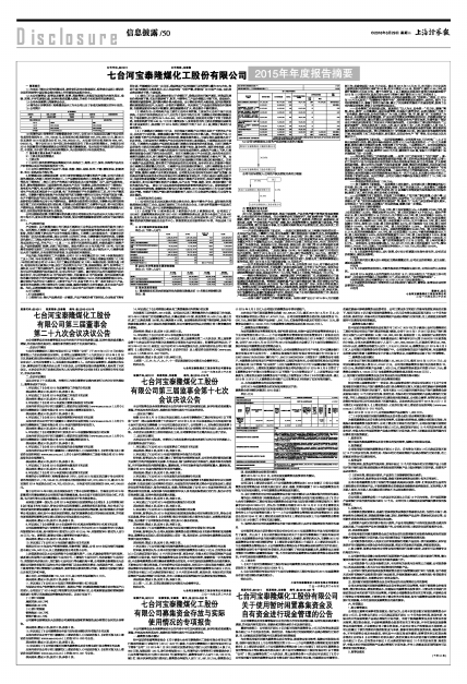 具体内容详见公司于同日披露在《上海证券报》、《中国证券报》、《证券时报》及上海证券交易所网站(www.sse.com.cn)上的《七台河宝泰隆煤化工股份有限公司2015年年度报告及年报摘要》。