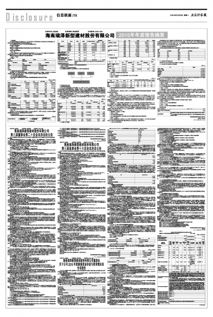 证券代码:002596 证券简称:海南瑞泽 公告编号:2016-025