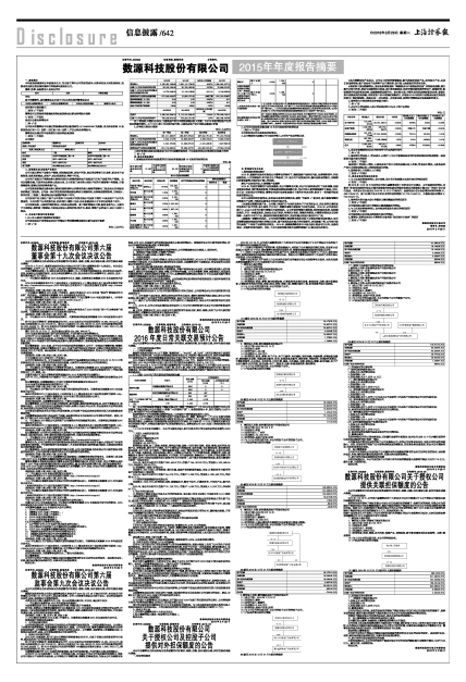 一.审议通过《数源科技2015年年度报告》全文、摘要。同意将该议案提请2015年年度股东大会审议。