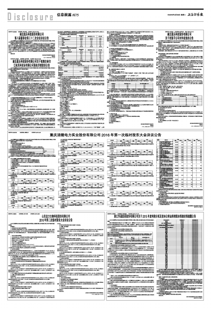 重庆涪陵电力实业股份有限公司2016年第一次临时股东大会决议公告