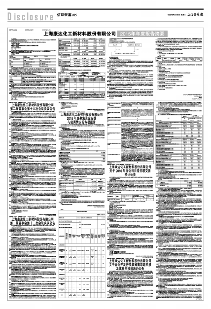 证券代码:002669 证券简称:康达新材 公告编号:2016-015