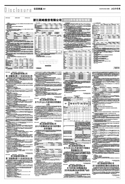 浙江跃岭股份有限公司(以下简称“公司”)于2016年3月28日召开第二届董事会第二十次会议,会议审议通过了《关于公司2015年度利润分配预案的议案》。现将相关事宜公告如下: