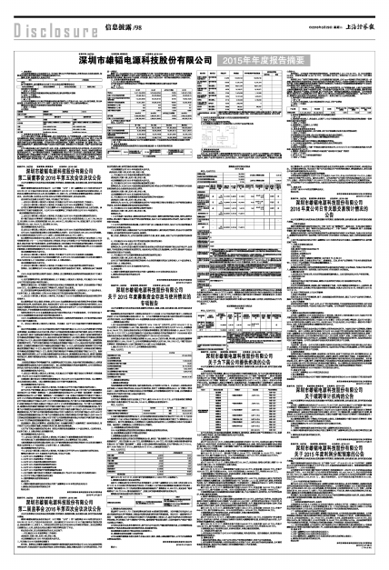 深圳市雄韬电源科技股份有限公司(以下简称“公司”)于2016年3月28日召开的第二届董事会2016年第五次会议审议通过了《关于审议 2015年度利润分配预案的议案》。现将该预案的基本情况公告如下: 一、2015 年财务概况