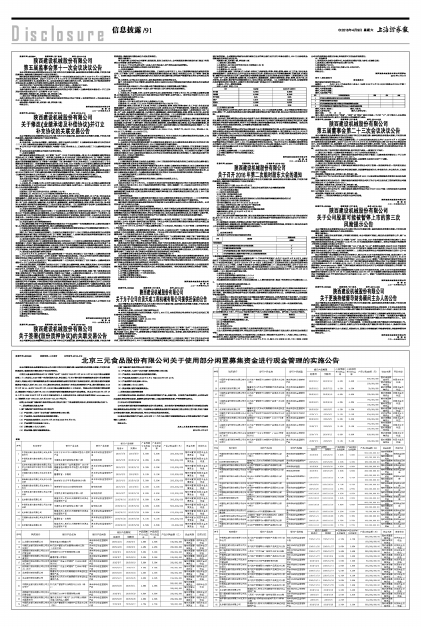 北京三元食品股份有限公司关于使用部分闲置募集资金进行现金管理的实施公告