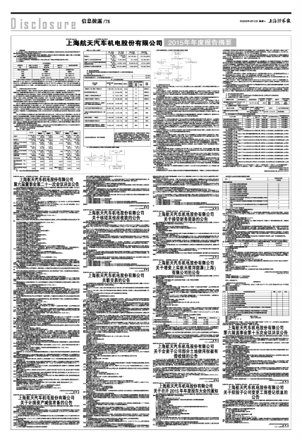 2016年3月28日,上海航天汽车机电股份有限公司第六届监事会第十五次会议通知及相关资料以电子邮件方式送达全体监事。会议于2016年4月8日在上海市漕溪路222号航天大厦召开,应到监事5名,实到监事5名,符合《公司法》及公司章程的有关规定。