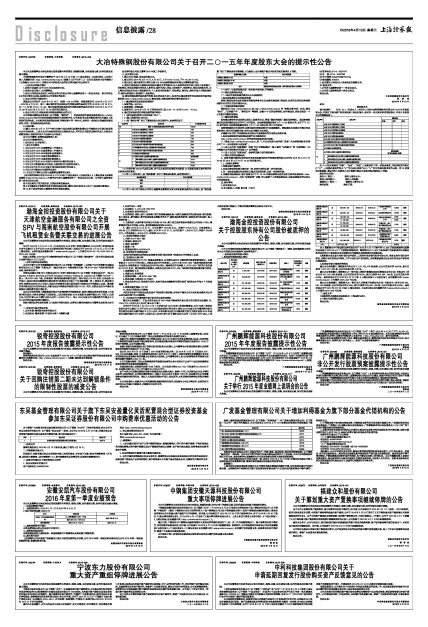 大冶特殊钢股份有限公司关于召开二○一五年年度股东大会的提示性公告