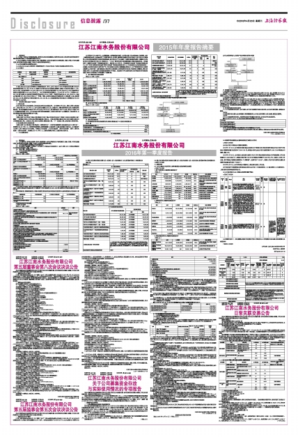 具体内容详见刊登于《中国证券报》、《上海证券报》、《证券时报》和上海证券交易所网站(http://www.sse.com.cn)的《江苏江南水务股份有限公司关于召开2015年年度股东大会的通知》(公告编号:临2016-029)。
