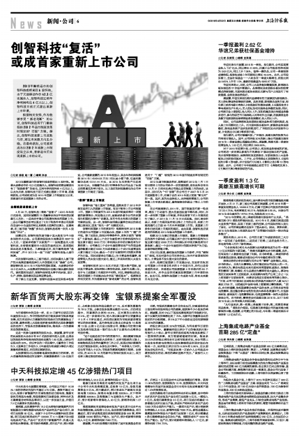 2013年黯然退市的创智科技或将重回A股怀抱。随着天珑移动作价42.3亿实施注入,创智科技经营业绩因而有了“脱胎换骨”的变化,近两年净利润均在4亿元以上。以此为后盾,创智科技日前正式提出重新上市申请,若最终获批,公司或将成为自2012年重新上市制度设立以来,首家退市后实现重新上市的公司。