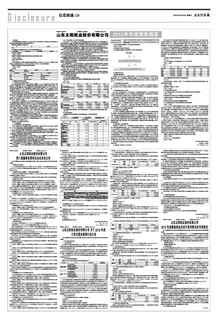 证券代码:002078 证券简称:太阳纸业 公告编号:2016-018