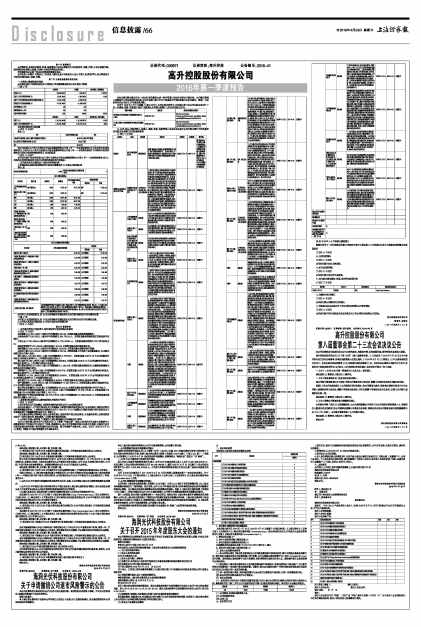证券代码:000971 证券简称:高升控股 公告编号:2016-41