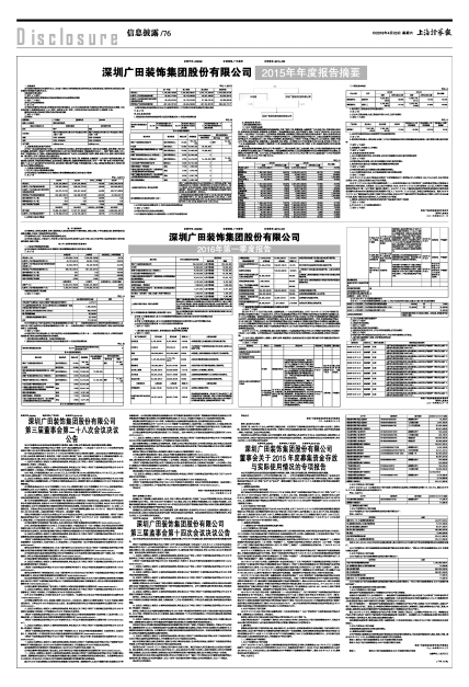 《深圳广田装饰集团股份有限公司2015年度报告摘要》详见公司指定信息披露媒体《证券时报》、《证券日报》、《上海证券报》、《中国证券报》及公司指定信息披露网站巨潮资讯网(www.cninfo.com.cn)。