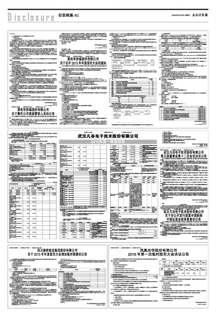 《武汉凡谷电子技术股份有限公司2016年第一季度报告全文》登载于巨潮资讯网(http://www.cninfo.com.cn),《武汉凡谷电子技术股份有限公司2016年第一季度报告正文》同时刊登于公司指定信息披露媒体《证券时报》、《证券日报》、 《中国证券报》、《上海证券报》。