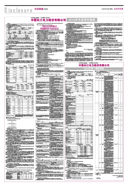 股票代码:600900 股票简称:长江电力 公告编号:2016-023