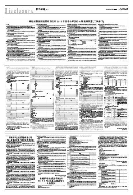绿地控股集团股份有限公司2015年度非公开发行A股股票预案(二次修订)