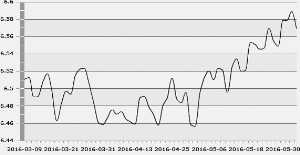 观察5月至今以来的走势,在岸、离岸市场上,人民币对美元即期汇率走势基本同步,并未形成明显的汇差。昨日两市场汇差仍较窄,尾盘都在6.58附近。
