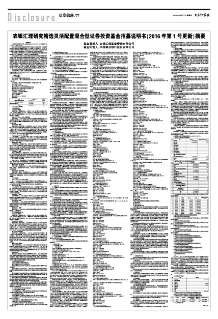 农银汇理研究精选灵活配置混合型证券投资基金招募说明书(2016年第1号更新)摘要