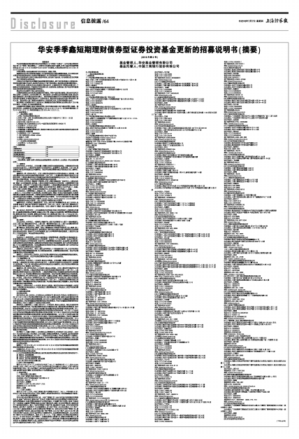 华安季季鑫短期理财债券型证券投资基金更新的招募说明书(摘要)