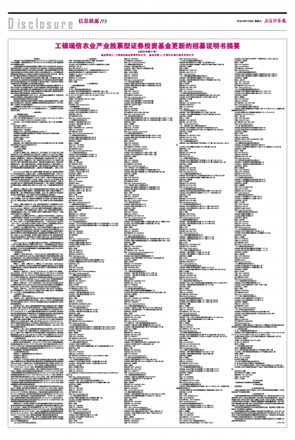 工银瑞信农业产业股票型证券投资基金更新的招募说明书摘要