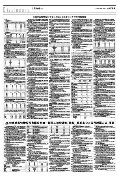 云南驰宏锌锗股份有限公司第一期员工持股计划(草案)(认购非公开发行股票方式)摘要