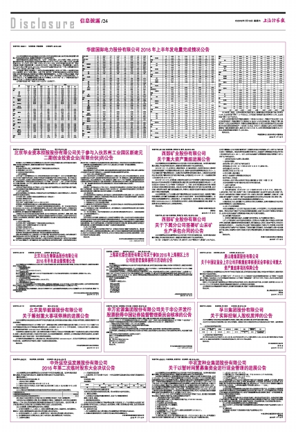 华能国际电力股份有限公司2016年上半年发电量完成情况公告