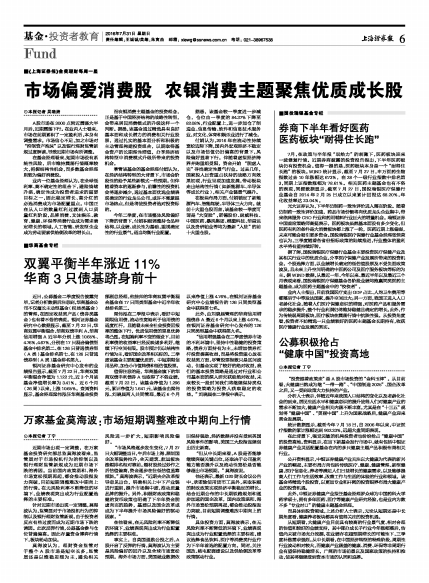 光大证券认为,下半年仿制药一致性评价进入落实阶段。随着仿制药一致性评价加速,药品市场份额将向优质龙头企业集中,带来临床服务CRO 行业和药用辅料行业巨大的增量机会。瑞银证券中国首席策略师高挺表示,医药板块虽然基本面没有多少变化,但医药有利的条件是大消费板块都上涨了一轮,医药近期上涨偏弱,未来可能会吸引更多资金。国投瑞银医疗保健行业基金经理张佳荣也认为,三季度随着各省份招标政策的陆续推进,行业整体的盈利水平将有望持续好转。