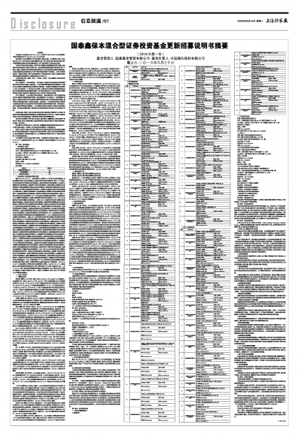 国泰鑫保本混合型证券投资基金更新招募说明书摘要