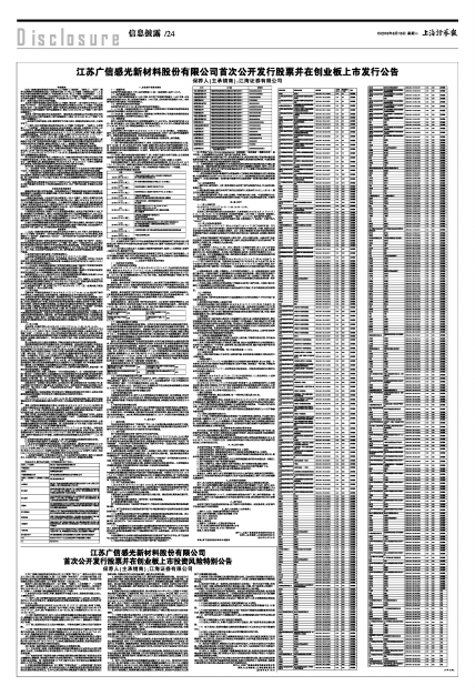 2、请投资者认真阅读本公告及同日刊登的《江苏广信感光新材料股份有限公司首次公开发行股票并在创业板上市投资风险特别公告》,充分了解市场风险,审慎参与本次新股发行。