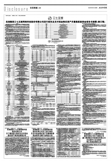本报告书摘要的目的仅为向公众提供有关本次重组的简要情况,并不包括发行股份及支付现金购买资产并募集配套资金报告书全文的各部分内容。发行股份及支付现金购买资产并募集配套资金报告全文同时刊载于深圳证券交易所网站(www.szse.cn)、巨潮资讯网(www.cninfo.com.cn);备查文件备置于芜湖顺荣三七互娱网络科技股份有限公司。