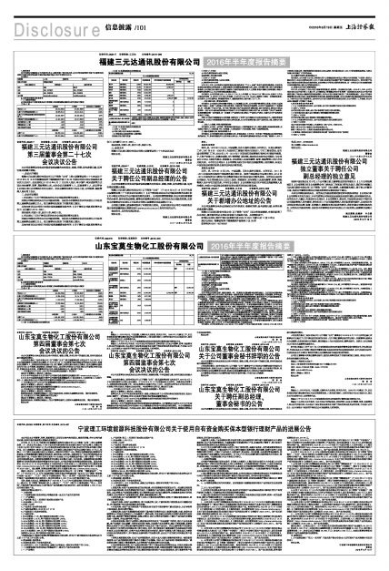 证券代码:002417 证券简称:三元达 公告编号:2016-089