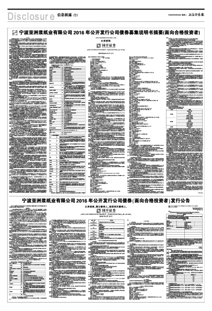 宁波亚洲浆纸业有限公司2016年公开发行公司债券募集说明书摘要(面向合格投资者)