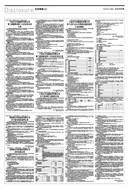 宁波东方电缆股份有限公司(以下简称“公司”)第三届董事会第十九次会议于2016年8月31日在公司会议室(宁波市北仑区江南东路968号)召开,本次会议通知于2016年8月19日以书面和邮件方式送达各位董事,会议由董事长夏崇耀先生主持。本次董事会应参加董事9人,实际参加会议董事9人。本次董事会会议的召开符合《公司法》与《公司章程》的规定。公司全体监事与部分高级管理人员列席了会议。本次会议审议通过了如下议案。
