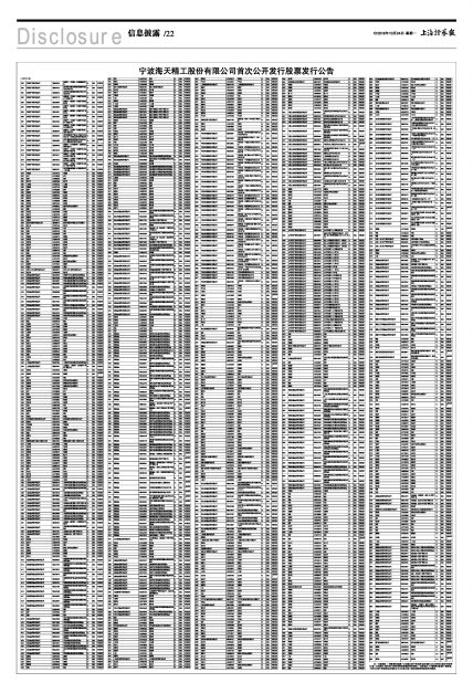 宁波海天精工股份有限公司首次公开发行股票发行公告